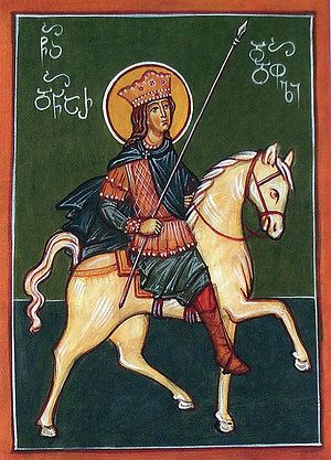 Today, on the north wall of the Throne Hall in the Moscow Kremlin, there hangs an image of Holy Queen Dinar mounted on a white horse, victorious over the enemy.