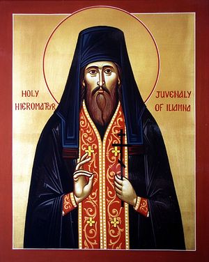 Today Alaska rejoices and America celebrates / for the New World has been sanctified by martyrdom. / Kodiak echoes with songs of thanksgiving, / Iliamna and Kenai observe the Festival of Faith. / The apostle and martyr Juvenaly is glorified / and Peter the Aleut is exalted by his voluntary sacrifice. / In their devotion and love for the Lord / they willingly endured persecution and death for the Truth. / Now in the Kingdom of Heaven they intercede for our souls.