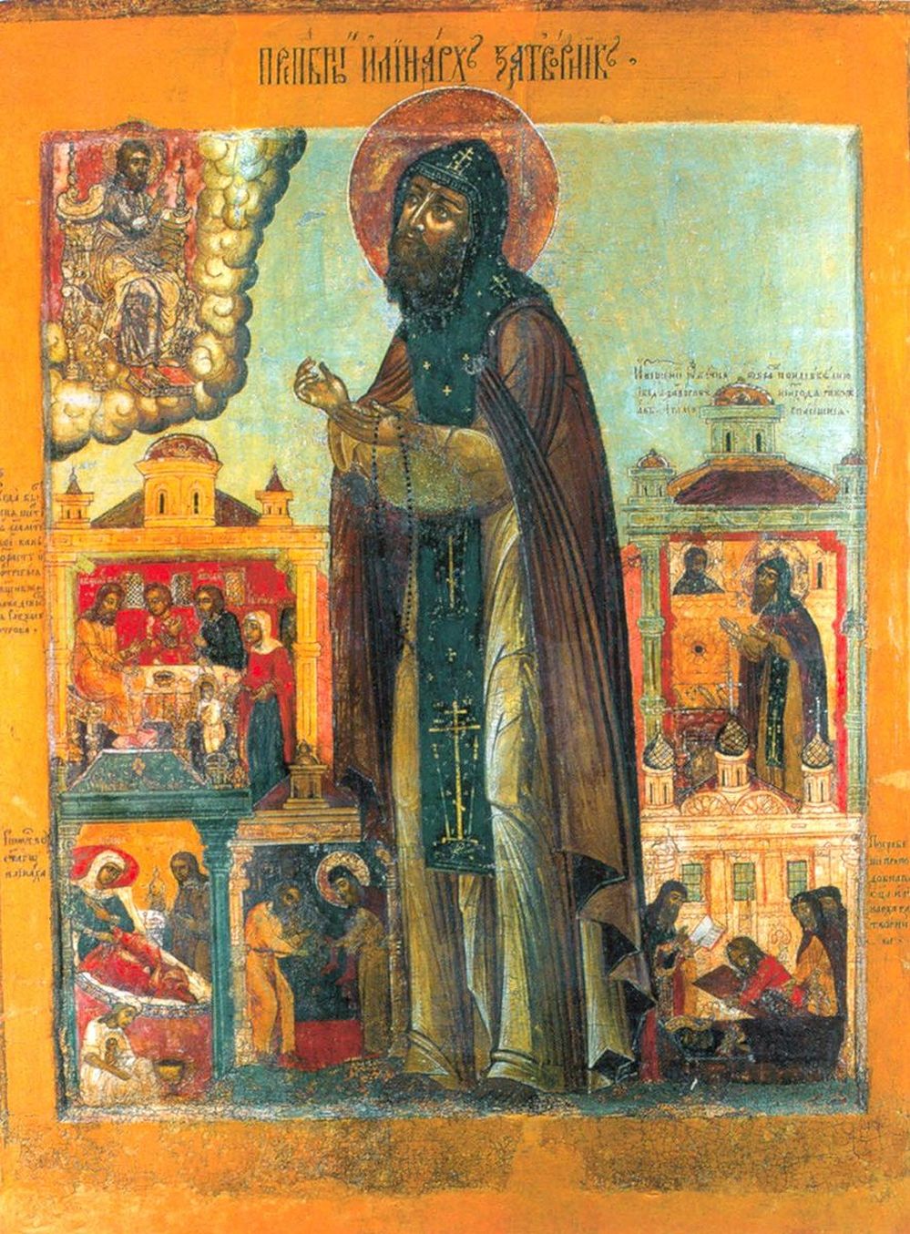 Saint Irenarchus had a vision that Lithuania would invade Moscow, and that churches there would be destroyed. He began to weep bitterly about the impending disaster, and the igumen ordered him to go to Moscow and warn Tsar Basil Shuisky (1606-1610) about the terrible misfortune. Saint Irenarchus carried out the order. He refused the gifts offered him and when he returned, he began to pray fervently that the Lord would show mercy on the Russian land.