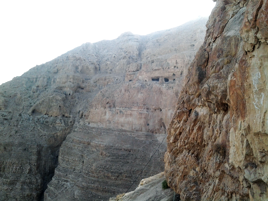 The Mount of Temptation (also Quarantania, “Of the Forty Days”) towers on the northwestern outskirts of Jericho. There is a Greek Orthodox monastery on its slope, whose main relic is the stone on which Jesus Christ prayed during His forty-day fast, preparing for His ministry on Earth, and where He was tempted by satan.