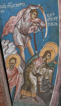 Saints Cyrus and John gave them courage to endure what lay before them. Learning of this, the ruler of the city arrested Saints Cyrus and John, and seeing their steadfast and fearless confession of faith in Christ, he brought Athanasia and her daughters to witness their torture. The tyrant did not refrain from any form of torture against the holy martyrs. The women were not frightened by the sufferings of Saints Cyrus and John, but courageously continued to confess Christ. They were flogged and then beheaded, receiving their crowns of martyrdom.