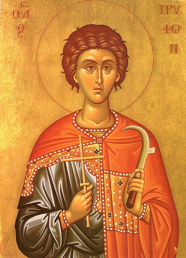The Martyr Tryphon was born in Phrygia, one of the districts of Asia Minor, in the village of Lampsacus. From his early years the Lord granted him the power to cast out demons and to heal various maladies. He once saved the inhabitants of his native city from starvation. Saint Tryphon, by the power of his prayer, turned back a plague of locusts that were devouring the grain and devastating the fields.