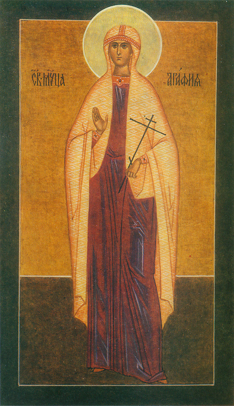 The Holy Virgin Martyr Agatha was the fifteen-year-old daughter of rich and respected Christian parents from the city of Palermo (formerly Panormos) in Sicily. During the persecution under the emperor Decius (249-251), the city prefect of Catania, Quintianus, having heard about Agatha’s wealth and beauty, sent his soldiers after her to bring her to trial as a Christian.