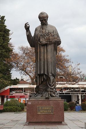 After the death of St. Methodius he fled from the Latin persecution into Bulgaria. Bulgarian Prince Boris I sent St. Clement to preach in the western part of the first Bulgarian Kingdom, particularly to Kutmicevica and Ochrid. There he established the Ochrid literary school, one of the oldest cultural centers of the Bulgarian Kingdom in the Balkans. He was unanimously elected the first “Bishop of the Slavic Language” at the national council of 893.
