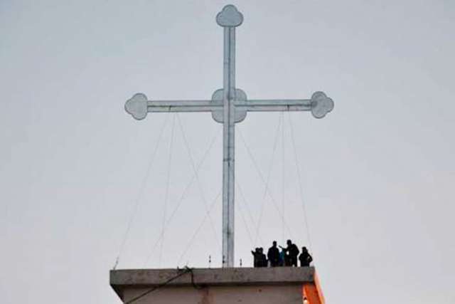 As a symbol of victory of light over darkness, of Christ over Satan, a giant cross has been erected on a hill in the Iraqi town of Telekuf-Tesqopa, just seventeen miles from Mosul, following the expulsion of ISIS Islamic Jihadists.