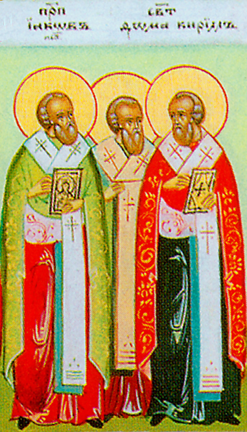 During the patriarchate of Saint Thomas, an ominous portent appeared in the land of Galatia (Asia Minor). The heavy crosses which were carried during church processions began to shake and to strike against each other. The clairvoyant Elder, Saint Theodore Sykeotes (April 22), explained the meaning of this portent. He said that discords and disasters awaited the Church, and the state was in danger of barbarian invasion. Hearing this, the saint became terrified and asked Saint Theodore to pray that God would take his soul before these predictions were fulfilled.