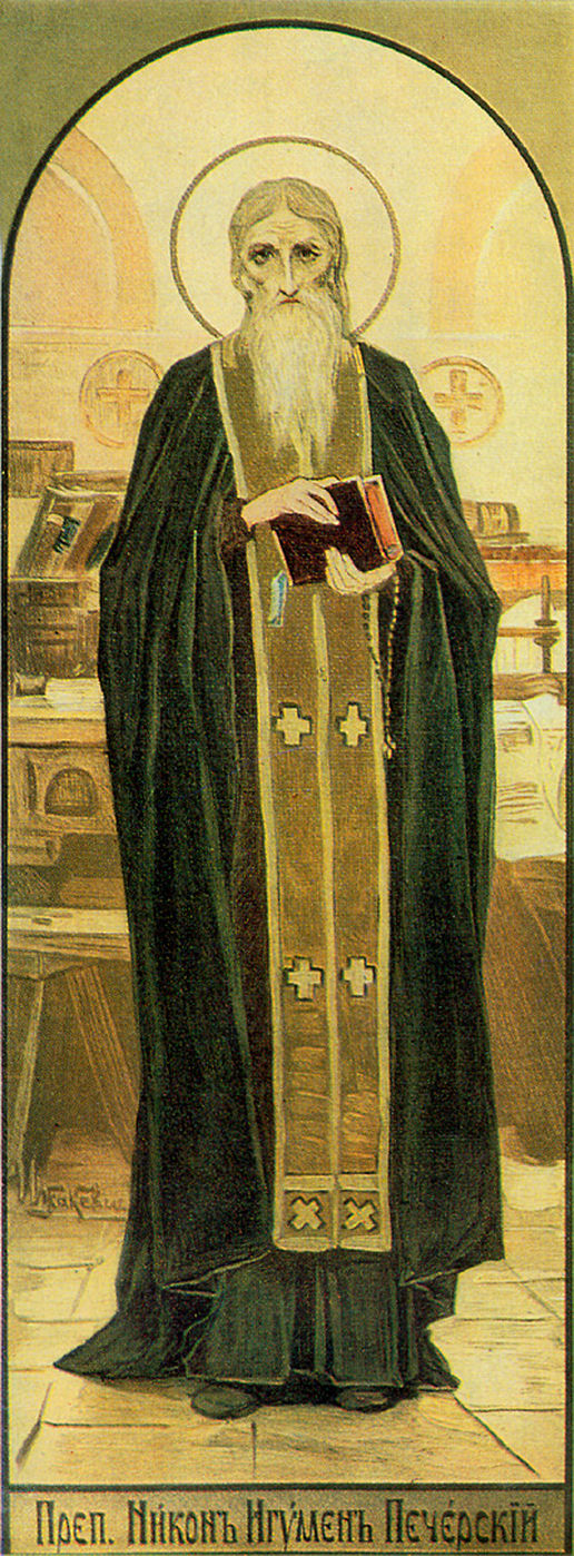 Saint Nikon of the Kiev Caves was the first disciple and fellow-ascetic of Saint Anthony (July 10), the founder of the Kiev Caves monastery, to which he came as a priest. At the monastery he tonsured all the new monks, and among their number was Saint Theodosius of the Caves (May 3 and August 14).