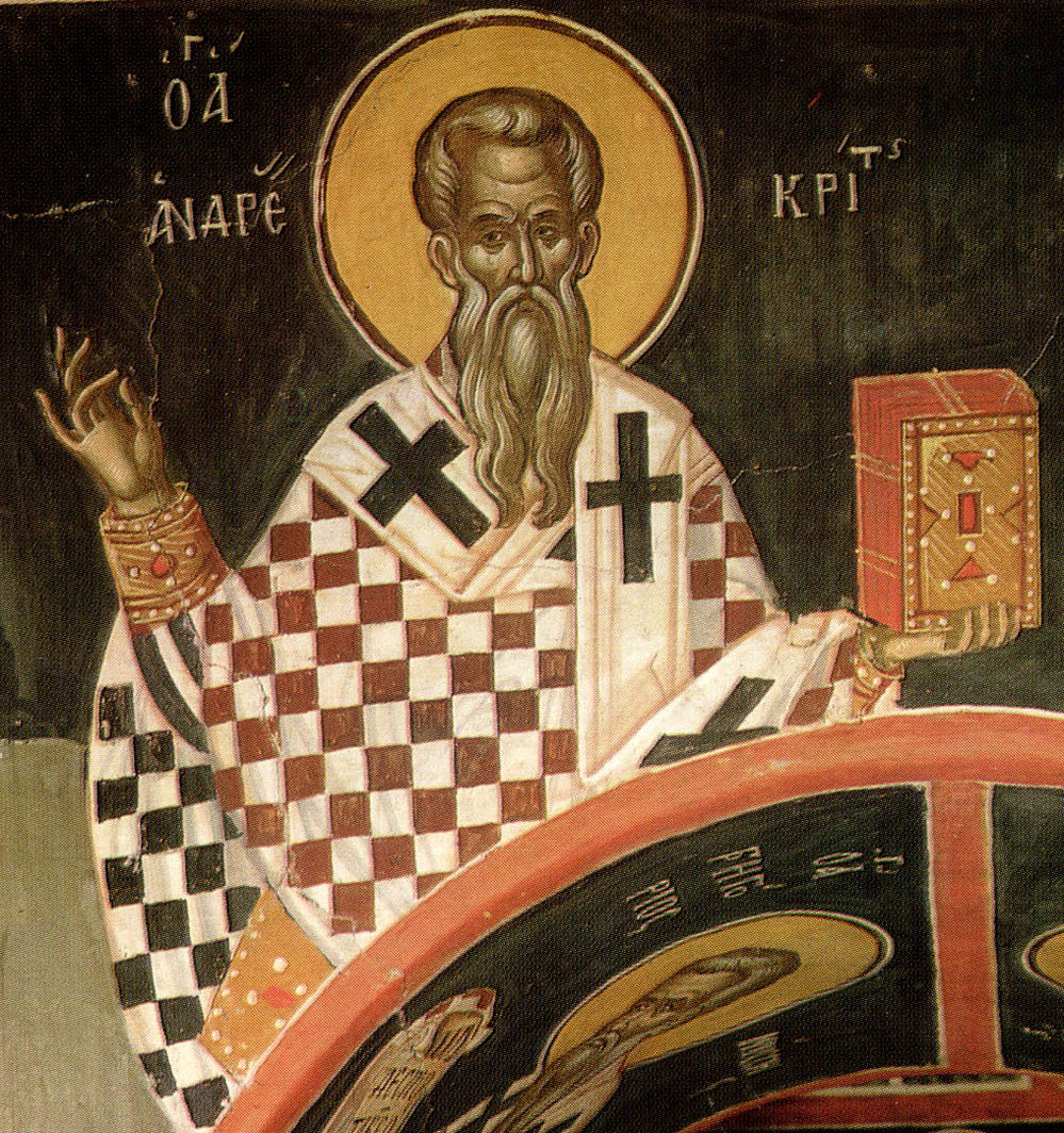 Let me start with a brief word about the text proper and its author—a necessity, if we are really to understand this Canon rightly. It was, as is well known, written in the first half of the eigth century by St. Andrew of Crete. Born in Damascus, the future hymnographer was, perhaps by divine irony, but certainly as a form of prophecy, mute until the age of seven. At that time he was healed through the reception of Holy Communion, and the experience stirred a zeal in the young boy's heart, in the life and the love of his Lord who had given him his tongue, and in the Holy Scriptures by which he saw Him revealed to him. Some seven years later at the age of just fourteen, he travelled to Jerusalem and became a monk at the Lavra of St. Savva the Sanctified.