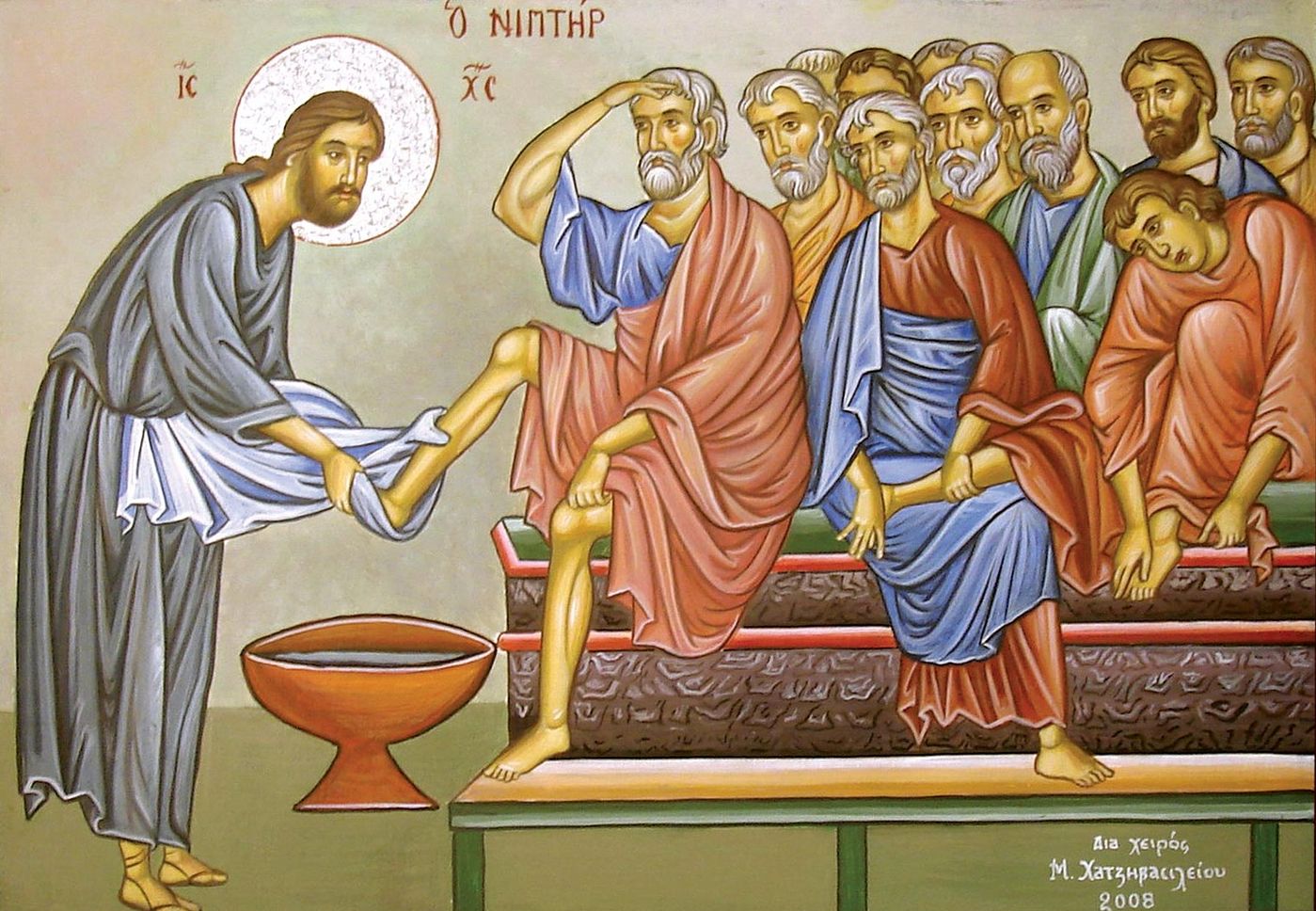 Our land is covered with Christian churches so that people would have the opportunity to commune, and they are painted with frescoes depicting the sacred history of the Old and New Testaments, and decorated with icons on which are depicted the events of this history and the faces of the saints who have lived a Christian life before us. We are not alone in this world; we have also entered into this Christian history, into this river. We continue this movement, as our predecessors, who look upon us from their icons, as if encouraging us. They also communed. And they also, each in his own place, served their neighbors and were always ready to wash one another’s feet, setting aside their pride, ego, positions, riches, knowledge, and so on.