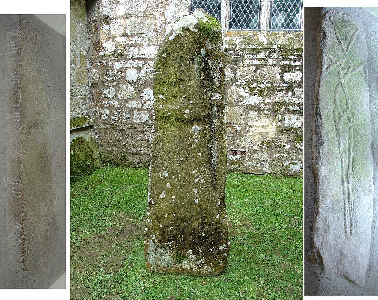 This holy place is very unusual. Firstly, it has preserved a Celtic cross of the tenth century outside the church, which stands intact to this day. It is called “the Great Cross”; it is about four meters high and sixty centimeters (two feet) in diameter. According to experts, it is one of the finest surviving examples of a Celtic monument in Wales. Secondly, there is a fifth century monument just outside the church, called the “Vitalianus stone”, which retains early inscriptions in Latin and Ogham—an ancient British and Irish alphabet, consisting of twenty characters formed by parallel strokes on either side of or across a continuous line. (There are more historic crosses nearby).