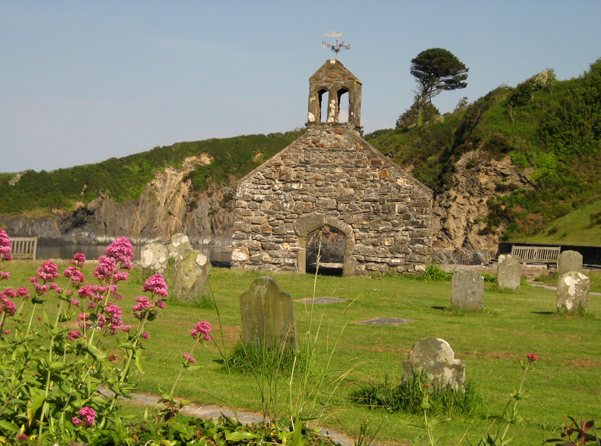 The holy man founded a number of other churches and chapels along rivers in Wales. Most of his establishments can be found in Pembrokeshire. Today some churches in the counties of Pembrokeshire, Carmarthenshire, Glamorgan, Monmouthshire and the former county of Brecknockshire are dedicated to him. A parish church in the village of Dinas Cross in Pembrokeshire is dedicated to Brynach. The chancel of the original old church, dating to the time of the saint, was washed away by the waves in 1850, and the roof and the north wall were destroyed nine years later. In the early 1860s, a small new church in honor of this saint was built in Dinas Cross further from the seashore (the original church had stood on the beach on the south-eastern corner of Dinas Island Peninsula). Some ruins of the old church survive and are now located in a park; their exact location is the hamlet of Cwm-yr-Eglwys (“Valley of the Church”) near Dinas Cross.