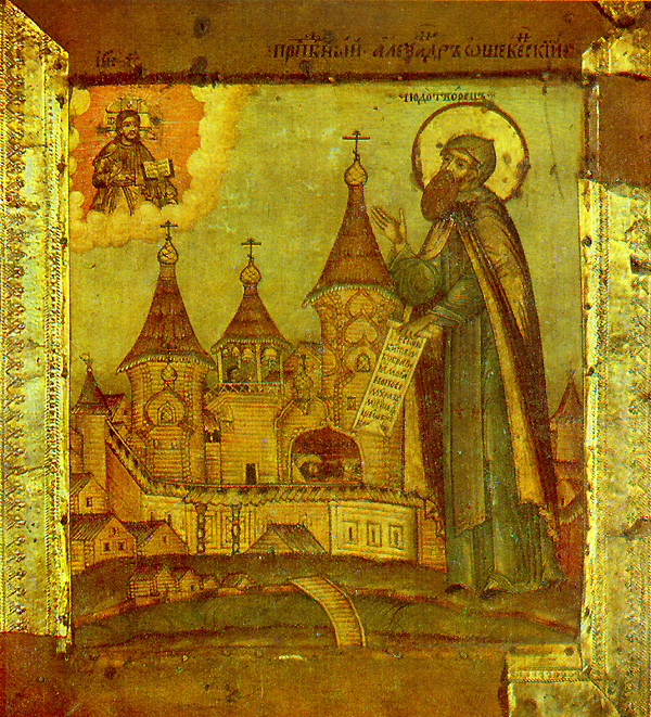 Saint Alexander of Oshevensk (+ 1479) was the founder of the Oshevensk Dormition Monastery, and enlightener of the Kargopol area, and was tonsured in the White Lake Monastery. He appeared to Saint Diodorus of George Hill (November 27) in the seventeenth century when his Holy Trinity Monastery ran out of supplies, and the brethren complained because there was nowhere to buy food in the wilderness.