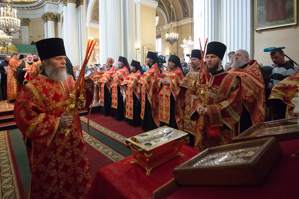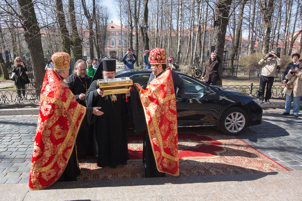 The sacred relics will remain at the Holy Trinity Cathedral of the St. Alexander Nevsky Lavra from May 5 to 9, and at the Cathedral of the Feodorovskaya Icon of the Mother of God in memory of the 300th anniversary of the House of Romanov from May 9 to 11.