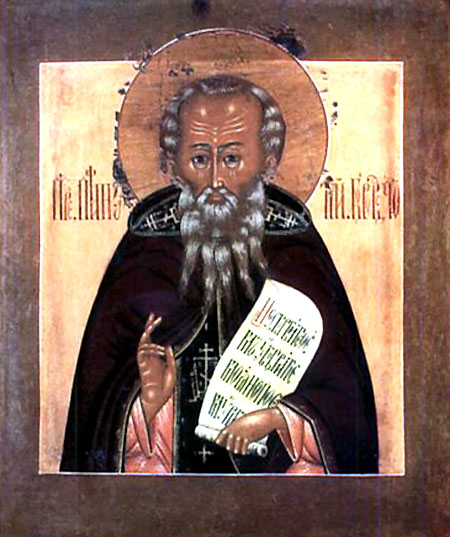Saint Paphnutius of Borov was born in 1394 in the village of Kudinovo, not far from Borov, and at Baptism he was named Parthenius. His father John was the son of a baptized Tatar, a “baskak” (“tax-collector”) named Martin, and his mother was named Photina. At the age of twenty, Parthenius left his home and received monastic tonsure in 1414 with the name Paphnutius at the Vyosky-Protection Monastery near Borov under its abbot, Marcellus. Saint Paphnutius struggled for many years at the monastery, and when Igumen Marcellus died, the brethren chose him as his successor. Saint Photius, Metropolitan of Kiev (July 2), ordained him to the priesthood around the year 1426.