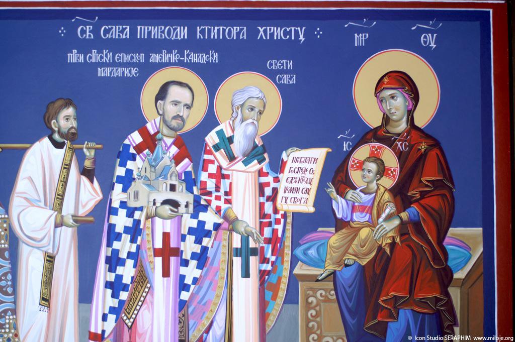 St. Mardarije, being led by the hand by St. Sava to offer the monastery in Libertyville to the Lord. Photo: miloje.org At the May 29, 2015 session of the Holy Synod of the Serbian Orthodox Church, the names of Archimandrite Sebastian (Dabovich) and Bishop Mardarije (Uskokovic), clergymen and preachers of the Gospel, God-pleasing servants of holy life, and inspirers of many missionaries, were added to the calendar of saints of the Orthodox Church.