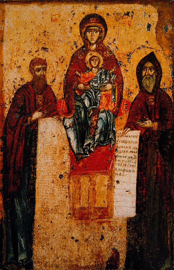 The Sven Caves Icon of the Mother of God was painted by Saint Alypius of the Caves (August 17). On the icon the Mother of God is depicted sitting upon a throne, and with the Divine Infant on Her knees. Saint Theodosius is on the right side of the throne, and Saint Anthony of the Caves on the left. Until the year 1288 it was in the Kiev Caves monastery, where it was glorified by miracles. In 1288 it was transferred to the Briansk-Svensk monastery, which is dedicated to the Dormition of the Most Holy Theotokos.