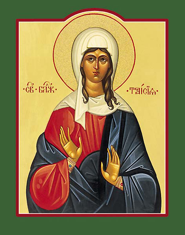 Saint Thais lived in Egypt in the fifth century. Left an orphan after the death of her wealthy parents, she led a pious life, distributing her wealth to the poor, and she gave shelter to pilgrims on her estate. She decided that she would never marry, but would devote her life to serving Christ.