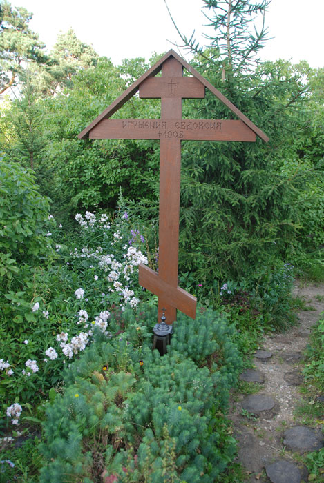 The servant of God Seraphima Mikhailovna came here when the convent’s restoration was beginning. One day as she was passing by that site she made a sign with her hand: “Your abbess lies there, and you are not even aware of this!” I said: “Seraphima Mikhailovna, please, show it.” She answered: “Not for anything! The grass stands tall with dew on it and I will get my feet wet. I won’t show it.” But a year later the abbess persuaded her. She showed us the grave and related how she had memorized its location: “I was born in Orsha in 1912. When bells called worshippers for a service, we first went to the cemetery and only then to the church. We used to come and pray here. Flowers grew here and an icon-lamp burned.” When the sisters resolved to make a mound on this place they discovered the remains of an iron cross with embellishments—it was just like what Seraphima had described. And four years ago we obtained a documentary confirmation: photographs from the U. S. Library of Congress’ archive by the Russian photographer Prokudin-Gorsky, taken in 1910-1913. On one of them a cathedral and a large embellished cross exactly at this place can be seen. So the mother abbess rests here. The sisters pray; they ask for her intercession and feel her help.