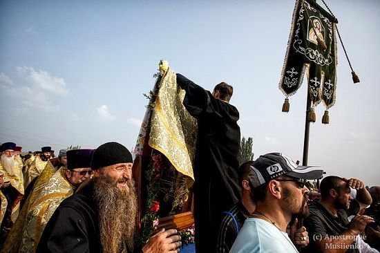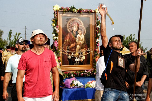 “When the procession reached such a volatile region, we were worried, but there was such enthusiasm that that we were as if soaring on wings for the first two days. People stood on their knees in front of the icon of the Mother of God with tears in their eyes in every village and city,” Met. Arseny recalled. “A small group of people were gathered to protest before Boryspil… You can toss rocks and eggs at me, insult me with all kinds of words, because I am a sinner and deserve it. But what is the Mother of God guilty of?!”
