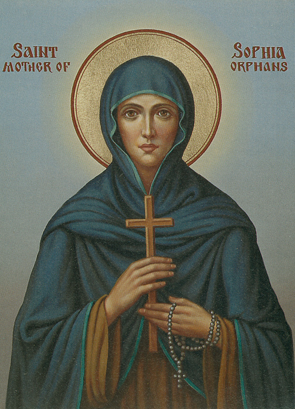 After sickness carried off Sophia's husband and all her children in succession, she did not despair, but became even more devoted to God. Within a period of twenty years, she adopted one hundred children, and raised them to love God. Because of this, she is sometimes called Saint Sophia the Mother of Orphans. She sold her property and gave the proceeds to the poor and to widows. She led an austere life, eating nothing but bread and water. She preferred to do without the necessities of life herself rather than allow any poor person to leave her home empty-handed. The Psalms of the Prophet-King David were always on her lips, and tears flowed continuously from her eyes.