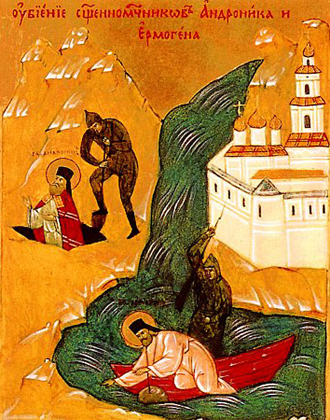 The holy New Martyr Archbishop Andronicus of Perm was an outspoken critic of the Communist decree which ordered the separation of Church and State. Upon reading the Moscow Overland Assembly’s instructions on the matter, Archbishop Andronicus ordered his archdeacon to anathematize the Communists. The Archbishop was arrested, shot by two members of the Perm CHEKA, then buried on the road from Perm to Motoviliha.