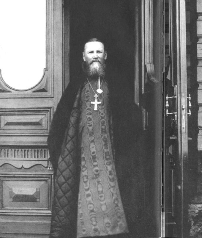 I arose and saw near the window a glorious starets (elder) with frosty grey hair, wearing a black mantia, and holding a staff in his hand. He looked at me tenderly, and I could scarcely keep from falling because of my great fear. My hands and feet trembled, and I wanted to speak, but my tongue would not obey me. The starets made the sign of the cross over me, and calm and joy soon came over me. Then I made the sign of the cross myself. He then pointed to the western wall of my cell with his staff in order that I should notice a certain spot. The starets had inscribed on the wall the following numbers: 1913, 1914, 1917, 1922, 1924, and 1934.