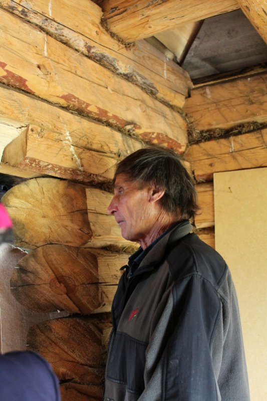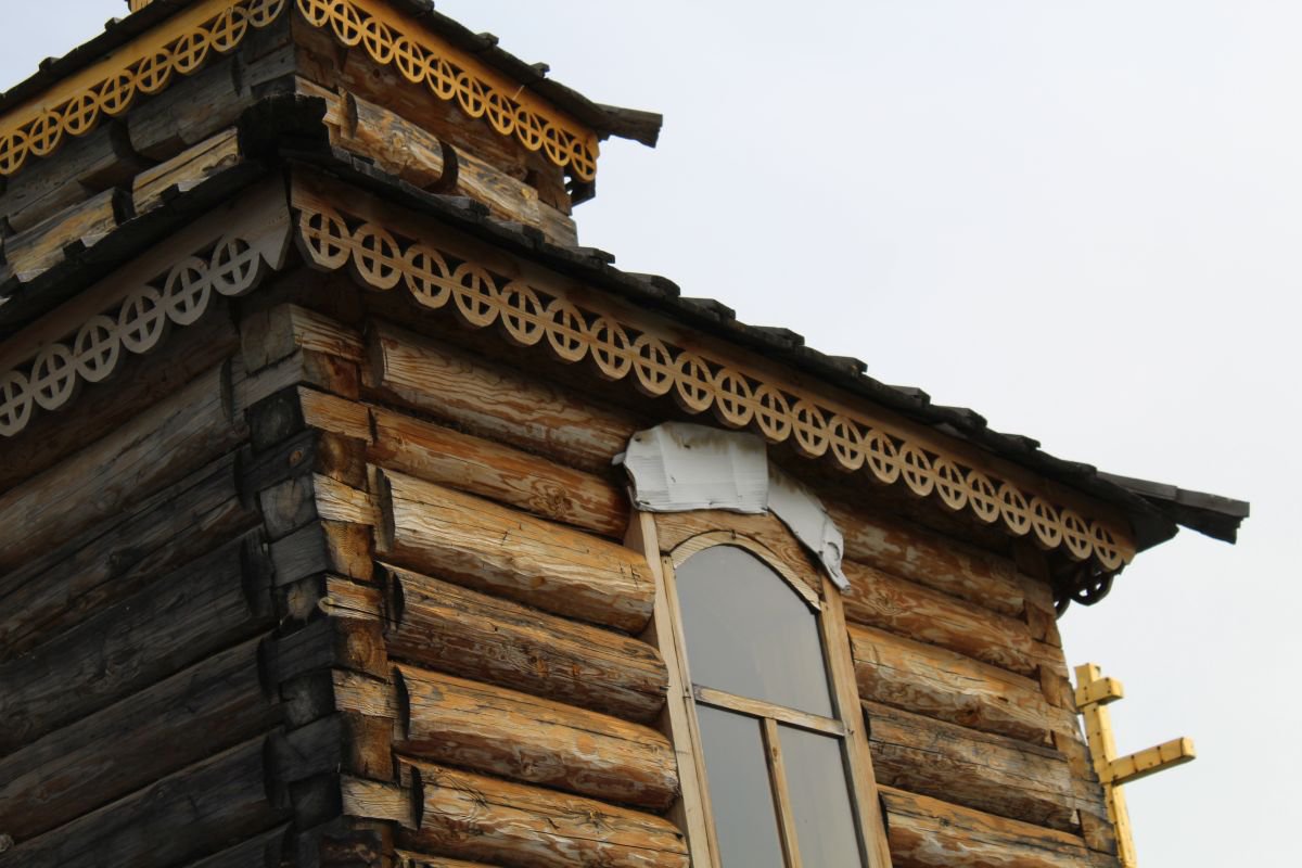 Gennady Taishikhin, a 79-year-old self-taught teacher, hunter, farmer, and former marathon runner (running up to 62 miles), began constructing the church in 2009. It was built in stages, with his own hands and his own personal funds. At first it was built as a cemetery chapel, with a narthex and bell tower being added later, and finally, in 2017, the altar. The church is made entirely of handmade detailing. Even the thin railing on the iconostasis was made with one axe.