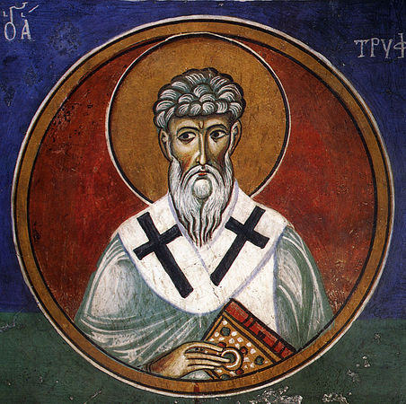 In truth you were revealed to your flock as a rule of faith, / an image of humility and a teacher of abstinence; / your humility exalted you; / your poverty enriched you. / Hierarch Father Triphyllius, / entreat Christ our God / that our souls may be saved.