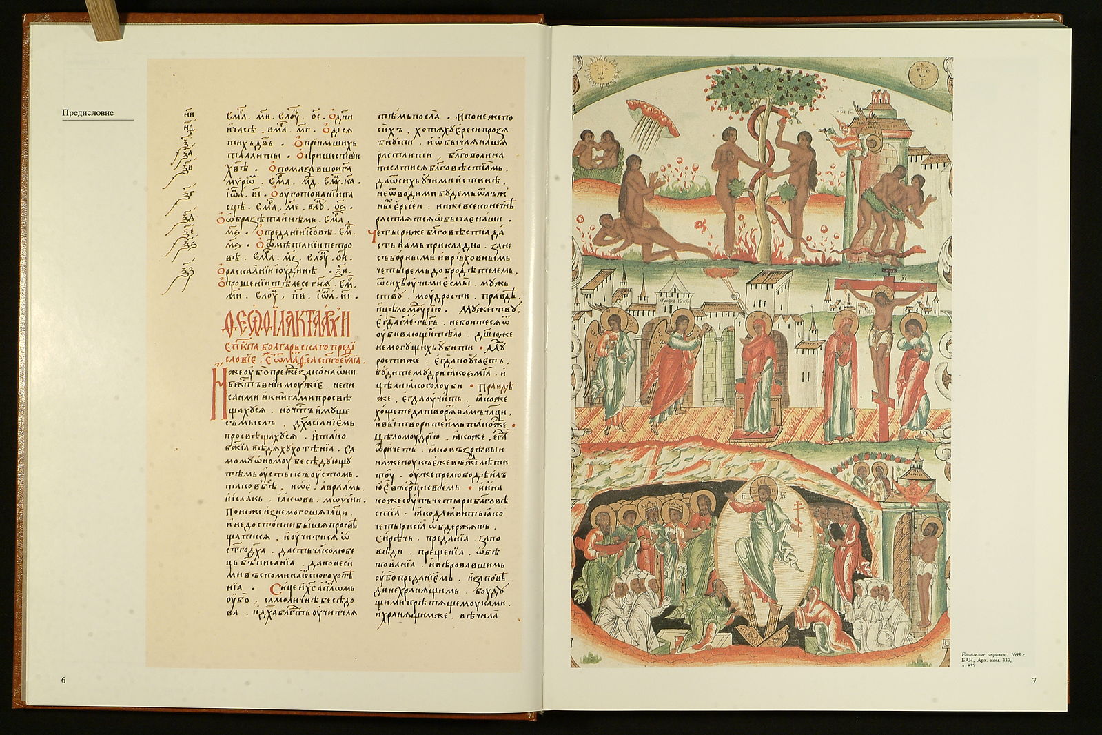 The publishing of the 10-volume illustrated Russian Bible was the life’s work of the Church historian, archaeographer, and philologist Archimandrite Innokenty (Prosvirin) (1940-1994). The center of the publication was the first full Russian Bible (1499, the so-called Gennadievsky Bible,) with a parallel text of the Russian-language Synodal translation (1876), and illustrated material from books of the Bible from the Russian manuscript tradition from the 10th to 19th centuries.