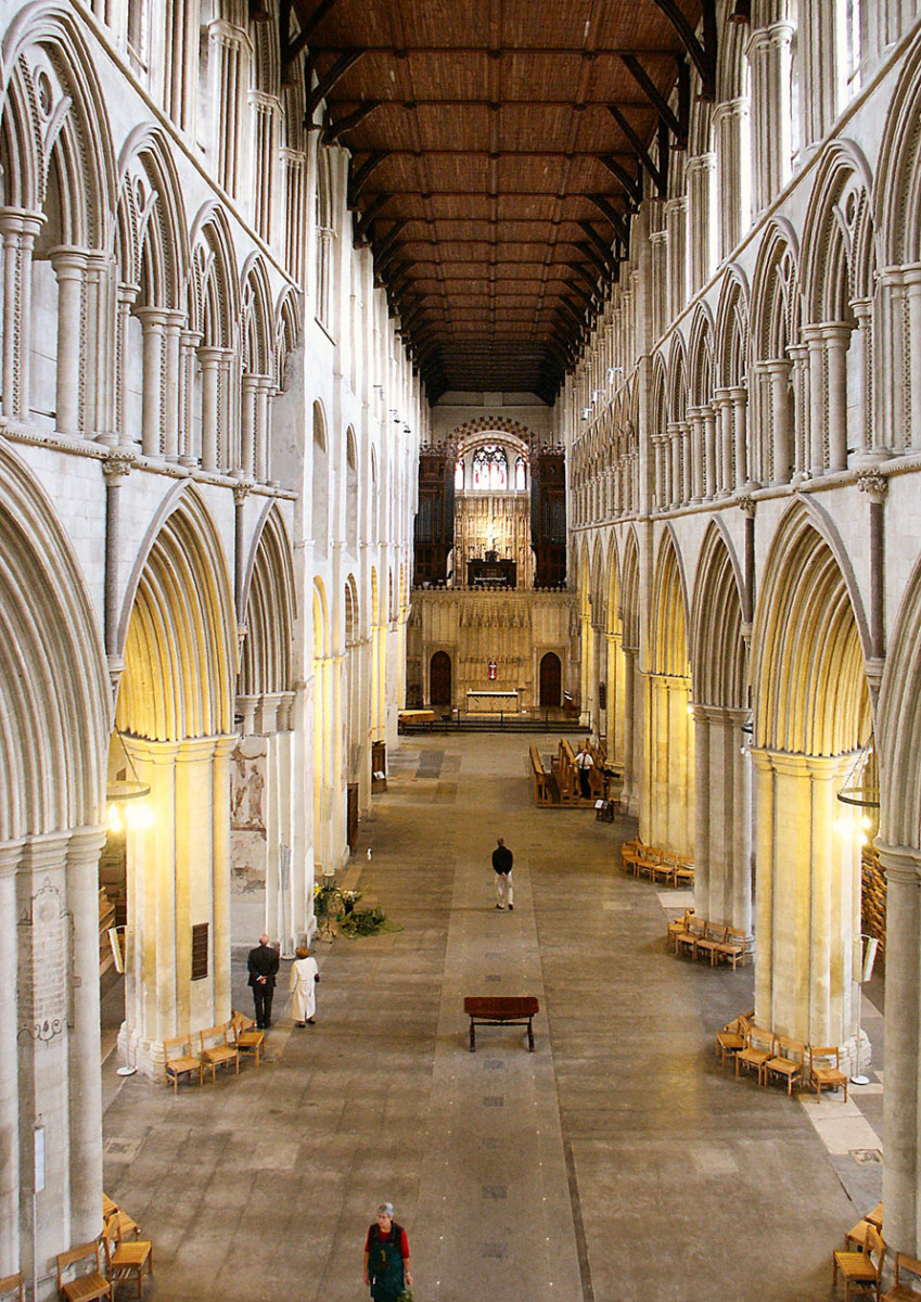 “St. Alban was England’s first Christian martyr, executed for his beliefs by the Romans early in the fourth century. None of the buildings from earlier monasteries established on Alban's tomb has survived, and the mighty abbey church around which the city of St. Albans grew was started by the first Norman abbot, Paul of Caen. As there were no local sources of stone, the builders utilized brick from the adjacent ruined Roman city of Verulamium. St. Albans took highest rank among medieval abbeys, favored by a decree from Pope Adrian IV in 1154 declaring that its abbot should be the senior mitred abbot in Parliament. It may be coincidental, but that particular pontiff was the only pope to come from England, Nicholas Breakspear, born not far from St. Albans. A case of nepotism, perhaps? The church has a long nave of twelve bays, some pillars of which are decorated with recently restored medieval wall paintings, helping to alleviate Norman austerity. Medieval designs have been repainted on to the wooden chancel ceiling, providing а perfect visual foil for the exquisite stone screen beneath. Nineteenth-century restoration, although vital in preserving much of the abbey’s fabric, was less than sympathetic to the abbey’s origins. Although work was generously financed by Lord Grimthorpe, a Victorian architect and lawyer, unfortunately he insisted on his own restoration plans.”