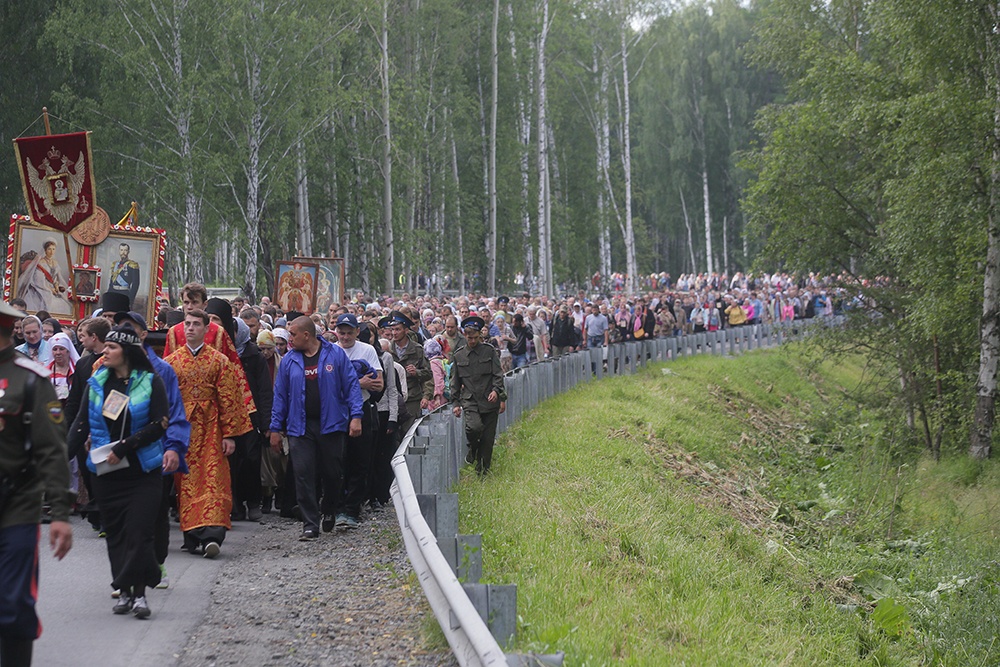 At about 3 AM, after the Divine Liturgy, the faithful began their prayerful march along the path along which the last imperial family was led in 1918. The procession was led by the hierarchs. According to preliminary estimates, more than 60,000 participated in the nighttime procession, which matches the number from last year. However, whereas there were about 3,500 communicants last year, this year there were around 7,000.