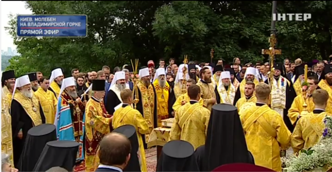 Today, on the eve of the feast of the holy Equal-to-the-Apostles Prince Vladimir and the Day of the Baptism of Rus’, and the occasion of the celebration of the 25th anniversary of the historical Kharkov Council of Bishops, the primate of the Ukrainian Orthodox Church (UOC) His Beatitude Metropolitan Onuphry led the festive moleben at the monument to the Baptizer of Rus’ at Vladimir Hill in Kiev, reports the Information-Enlightenment Department of the UOC.