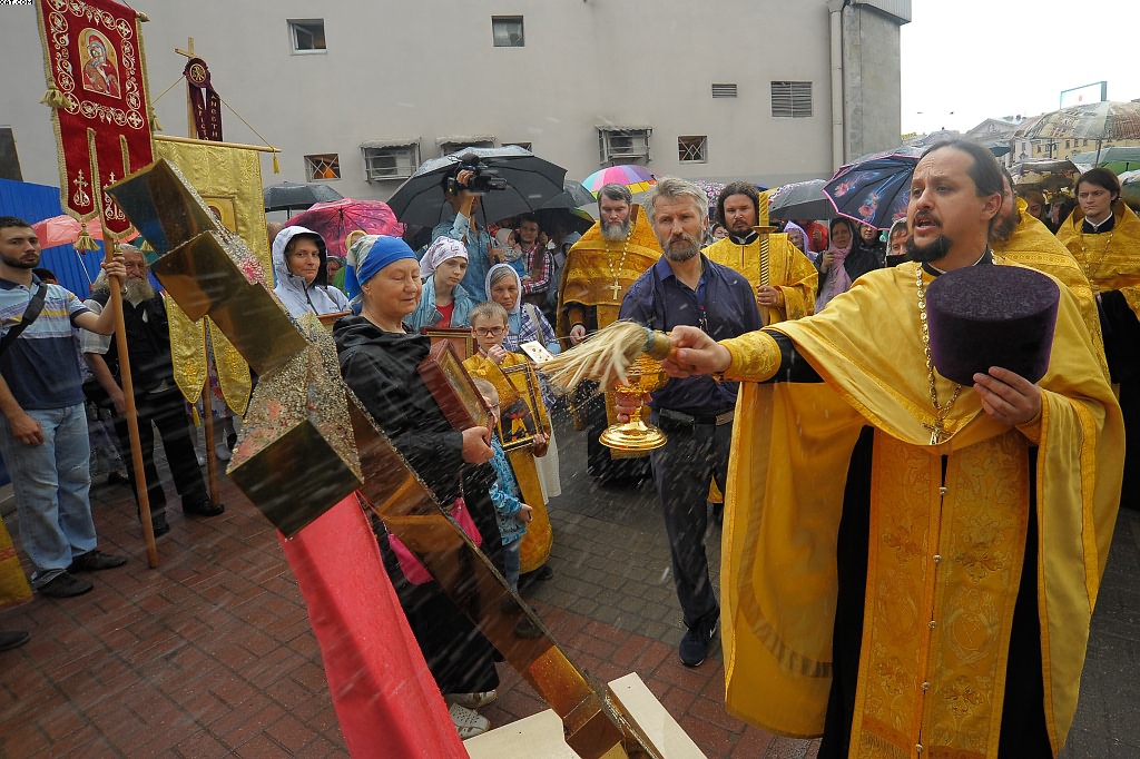 The “Savior” procession was historically celebrated annually on August 1/14 on the feast of the Procession of the Honorable and Live-Giving Cross of the Lord around the Church of the Savior on Sennoi Square, to commemorate the deliverance of St. Petersburg from a cholera epidemic. In 2016, at the initiative of the Union of Orthodox Businessmen and the parishioners of the Church of St. Seraphim of Vyritsa in the Bolshoi Gostinny Dvor and the Dormition Church on Sennoi Square, the procession was begun once more.