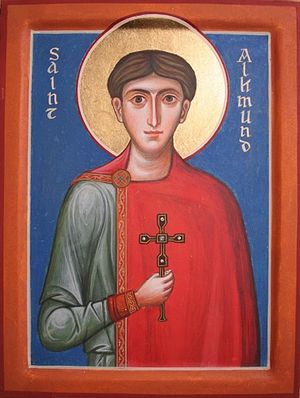 In art, our saint is depicted as a prince or a king (he may have briefly ruled Northumbria following his return from Scotland) with a crown or a sword. Alcmund the Passion-Bearer should be distinguished from another saint with the same name: Holy Hierarch Alcmund, the seventh bishop of Hexham in Northumbria, who reposed in 781 and is commemorated on September 7/20.