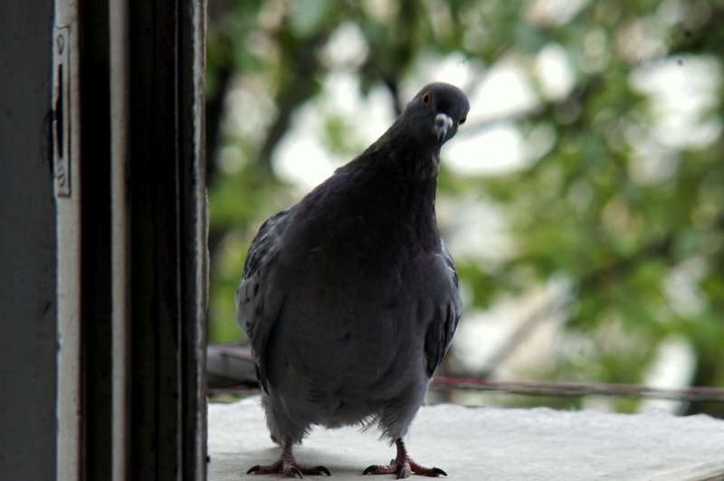 Here we also have to mention that (I don’t know, whether to our shame or not), we have more than once sworn to close this “soup kitchen” of ours. That is because, as I already said, these two are not the only pigeons who fly over; others also come at times, in small moronically noisy flocks at that, and they leave their droppings all over the window ledge and balcony railings “out of gratitude”, barbarically turning them into “Augean stables”. And if you come out onto the balcony of a wondrous summer evening to breathe in the fresh air, the first thing you do is look for a spot to lean your arms where they won’t be smudged with the “offerings of thanksgiving”. And simply as I said already, such a moronic crowd of pigeons flies in from who-knows-where, squawking, grunting, fighting, demanding bread, pecking each other, and even trampling all over the flowers… In a word, this demanding crowd sometimes just exasperates me with its audacity, honestly. In such moments my matushka (she is undoubtedly the main “sponsor” of all these “orphans and paupers” angrily announces a stop to these feedings. Then, truly, for the next few days she patiently endures the window ledge battalion, and the fights, and the noise, and the moronic throng, and even the importune tapping on the window with their beaks. But as soon as on some quiet ordinary morning matushka suddenly hears the persistent but nevertheless tactful “grunting” of the “old-timer” and his girlfriend, and sees their touching care for each other, she “breaks” and opens once again the, it would seem, forever closed shutter, and pushes some bread crumbs through the intentionally torn hole, and the whole cycle begins again…