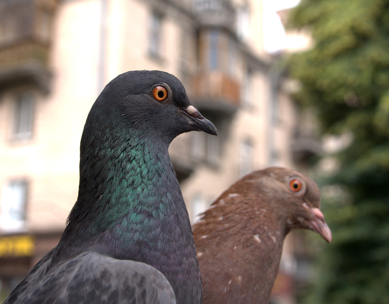 They both for all appearances consider our balcony and kitchen ledge to be their “patrimony”, and when others of their kind fly there, a real fight for their “sphere of interests” begins. There are trumpet sounds of all threatening and warlike shades, and the flapping of wings—with which as it turns out pigeons beat each other up with all their might so that feathers fly—and “heroic” chest swelling, and all the other noisy attributes of pigeon fights. My balcony door is slightly ajar; sometimes in the morning I print things from the computer, and when these pigeon brothers kick up an unimaginable ruckus, I go out on the balcony to route them away. But this doesn’t happen very often—only when winged intruders encroach on their “domain”. The greater part of this pigeon couple’s life passes quietly and peacefully.