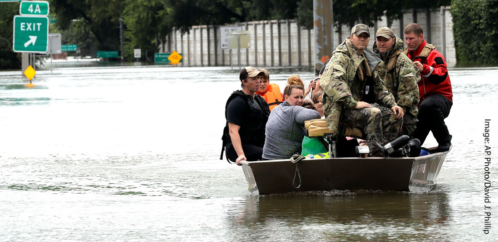 We have seen the fear in the faces of people pulled through windows and door of a nursing home having waited for hours to be rescued, sitting in wheel chairs with water up to their necks. We have witnessed families with terrified children plucked from the rooftops of their homes. We have suffered along with those who lost loved ones to the raging waters covering an enormous geographical area. We have been astounded by the numbers: over 50 inches of rain – trillions and trillions of gallons – falling in just a few days, water in many places over 25 feet deep reaching the roofs of thousands of homes, 4.5 million people in just the Houston area under siege.