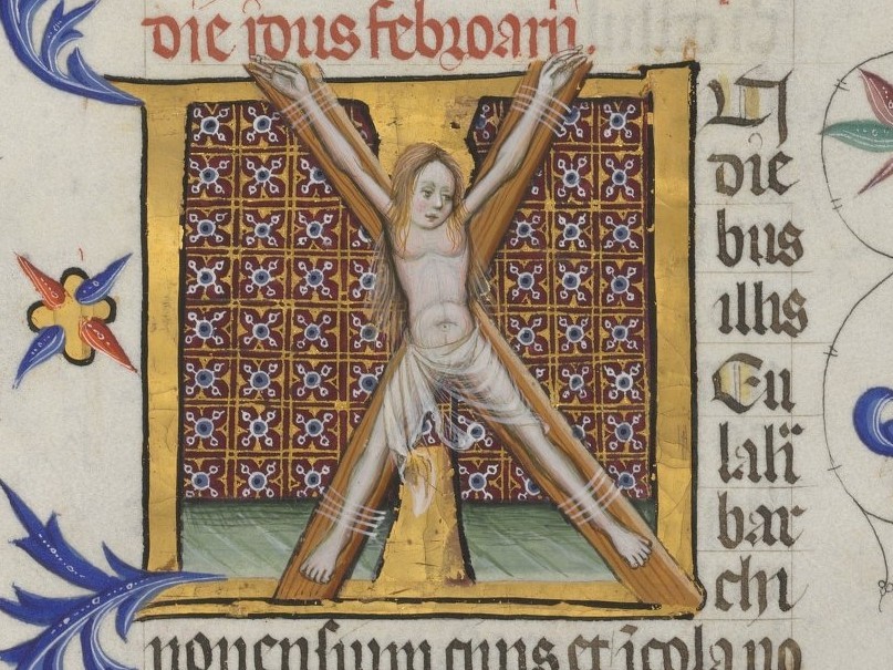 However, the young Christian did not manage to have any dialogue with the Barcino ruler. Moreover, the prefect, known for his crudeness and brutality, accused Eulalia of slandering the state authorities, of blasphemy (she flung a handful of dirt on the altar of the Roman gods), promoting ignorance and barbarism (Eulalia said that the depths of faith are higher than any Roman learning, if it is useless for the soul or even leads to destruction, as with the prefect Datsin), and even of insulting the imperial family (the young Christian called the emperor Diocletian an enemy of Christ and an unjust tyrant-torturer), and gave her over to trial. Completely obedient to the will of that cruel persecutor of Christians, the judicial collegium sentenced Eulalia to terrible punishment for the words of truth she had spoken—the young preacher was to be subjected to thirteen acute tortures (in accordance with her age), which she was not to survive, and which were to serve for the entertainment and edification of the crowd of onlookers.