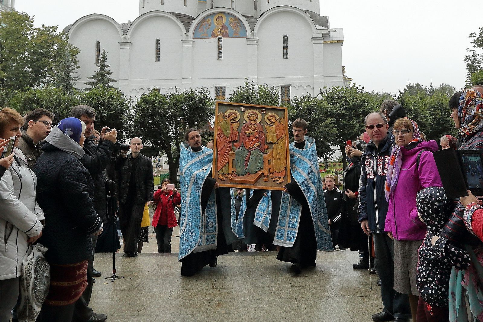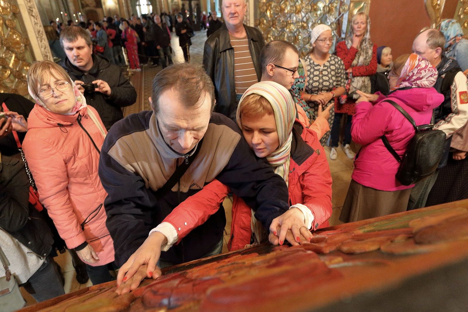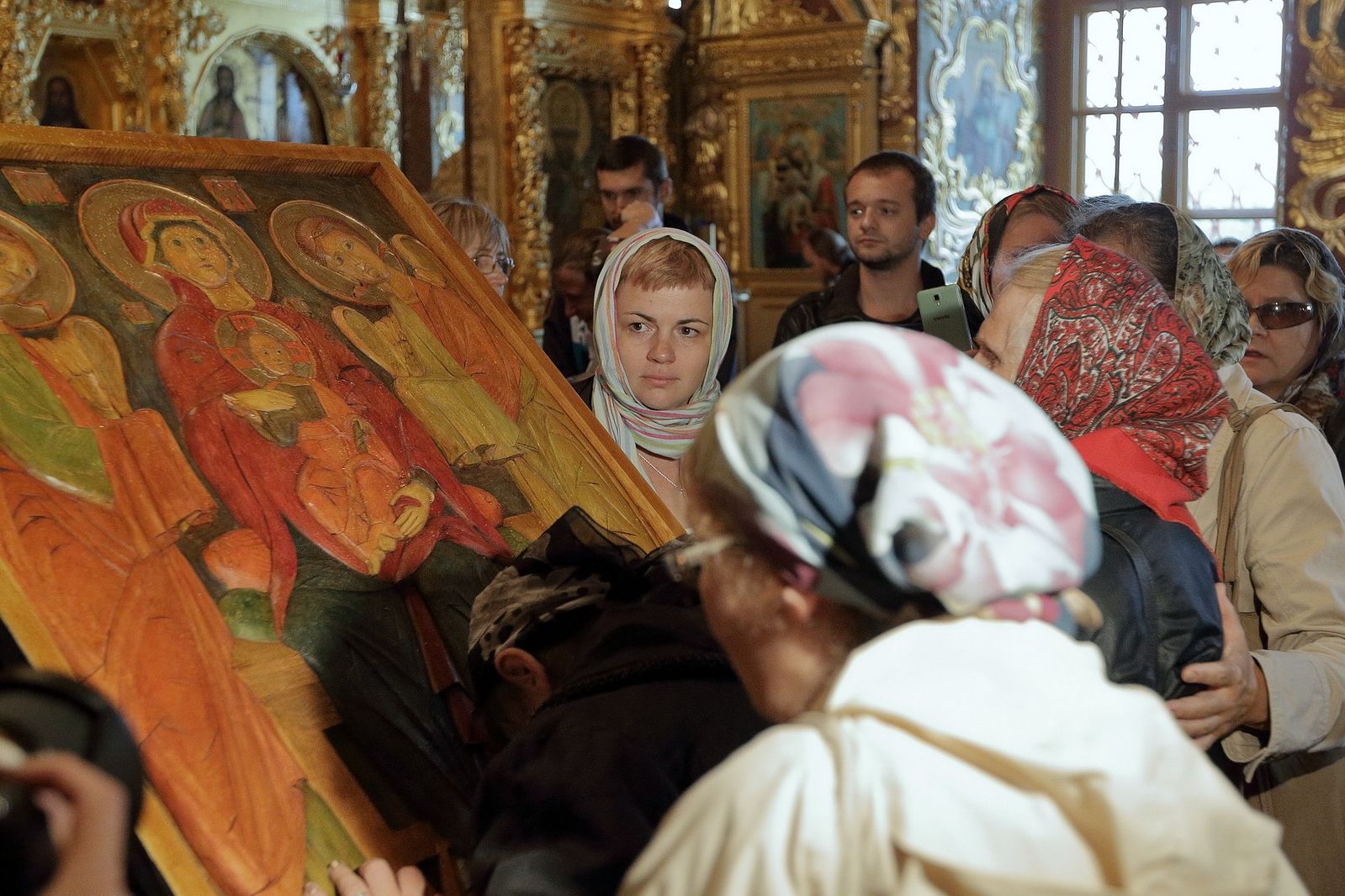 Following the end of the service, the blessed icon was transferred from the lavra to the podvoriye church at the boarding home for the deaf and blind.
