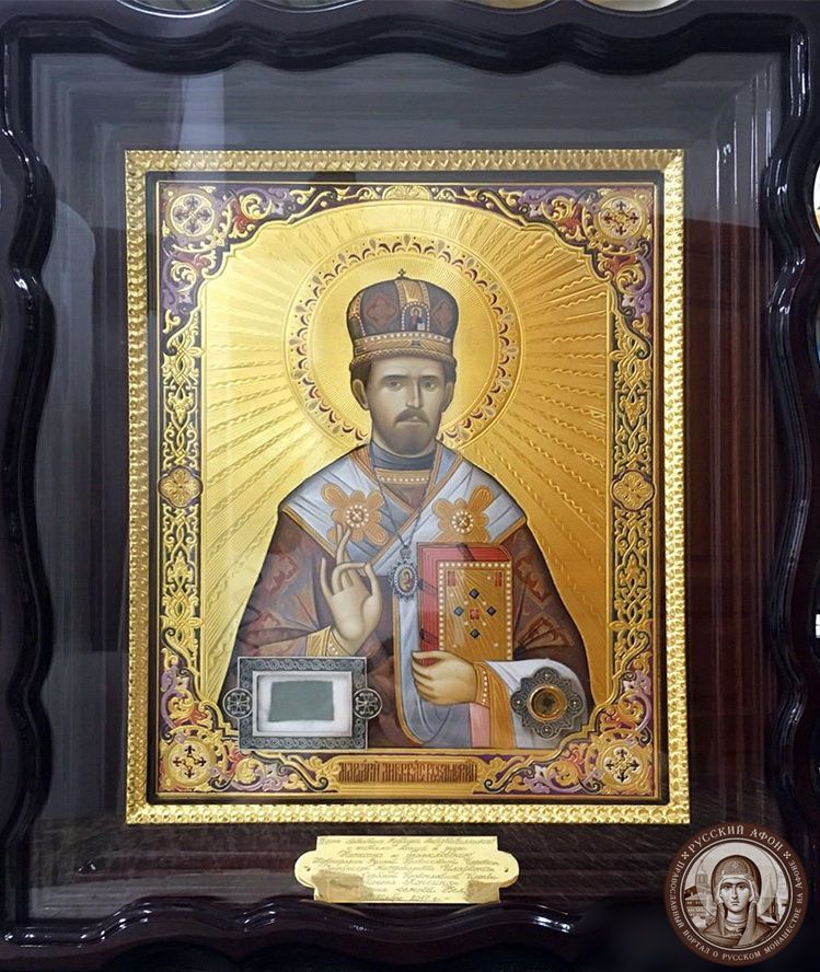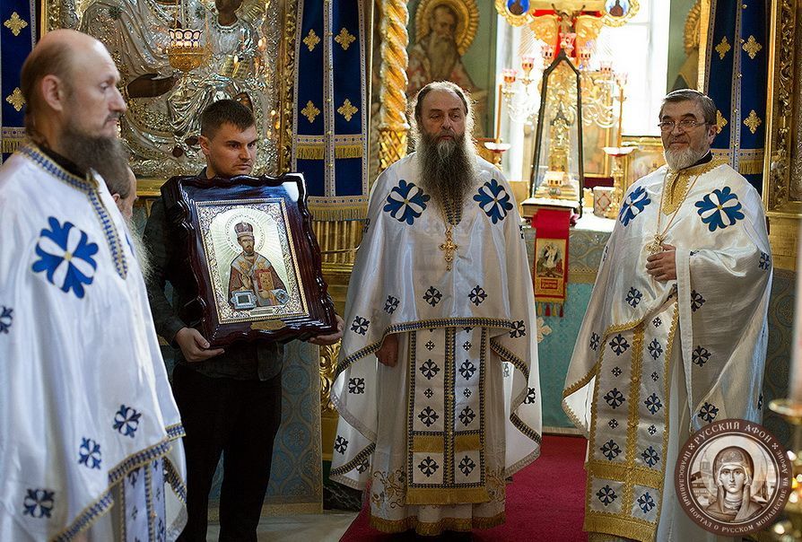 The icon was gifted to the Russian Athonite monastery with the blessing of the first hierarch of the Russian Orthodox Church Outside of Russia (ROCOR) His Eminence Metropolitan Hilarion of Eastern America and New York and Bishop Longin of New Gračanica-Midwestern America of the Serbian Orthodox Church in North and South America.