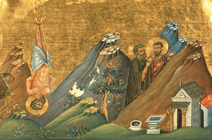 When asked what kind of magic he used to tame wild beasts, Saint Zosimas replied, “I am a Christian.” At Nazareth the tortures began. They tied the Elder head downwards, with a large stone around his neck, and they began to lacerate his body with iron hooks.