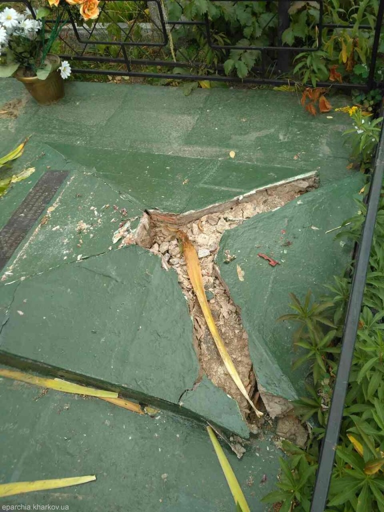 The cross at St. Alexander’s grave was broken, and his gravestone was partially damaged.