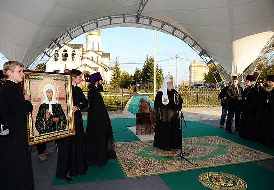 Following the blessing, the patriarch gave gifts to all the children, and a gift of an icon of St. Matrona of Moscow, who was blind from birth and very limited in movement, to the future rehabilitation center. “Thousands of people flock to St. Matrona of Moscow every day. Pray that St. Matrona of Moscow would help each of you overcome your difficulties in life,” the patriarch encouraged the children.