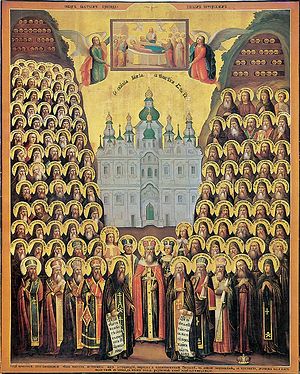 There is also a general commemoration of the Monks of the Near Caves together with the Monks of the Far Caves on the second Sunday of Great Lent, when the Synaxis of all the Monastic Fathers of Kiev Caves is celebrated. The Canon of the Hieromonk Meletius the Orphan enters into the Service of that feastday (the Service to the Kiev Caves Monastic Fathers, and to all the Saints who shone forth in Little Russia, inscribed from Akathists with a Canon). The service was printed by the Kiev Caves Dormition Lavra in 1866.