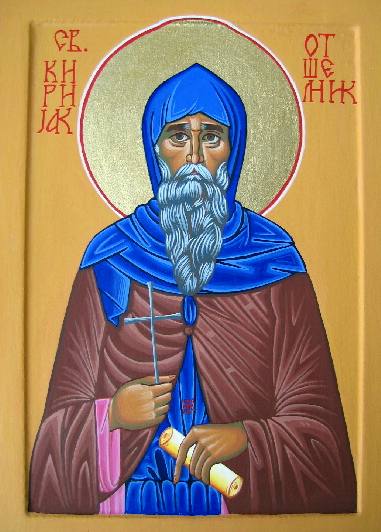 O dweller of the desert and angel in the body / You appeared to us a wonder-worker. / O God-bearing father Cyriacus, / Through fasting, vigil and prayer you received Heavenly gifts, / Healing the sick and the souls of those drawn to you by faith. / Glory to Him who gave you strength! / Glory to Him who granted you a crown! / Glory to Him who through you grants healing to all!