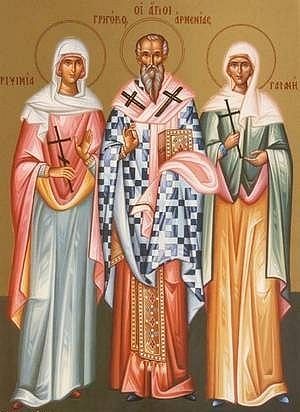 Saint Gaiana was the abbess of a women’s monastery in Asia Minor. When the emperor Diocletian (284-305) saw a portrait of Saint Rhipsime, he fell in love with her and wanted to marry her. She refused, saying that she was a bride of Christ. Fearing that the emperor’s agents would seize Rhipsime, the abbess and the nuns fled to Armenia. Diocletian sent word to King Tiridates of Armenia, asking him to capture Rhipsime and send her to him, or to marry her himself.