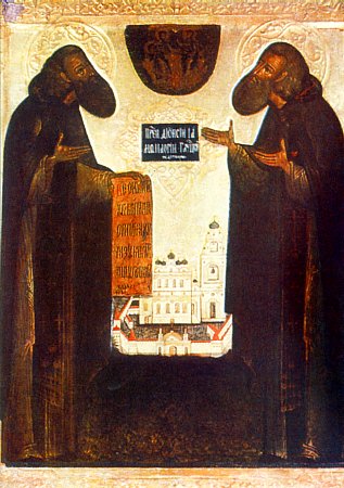 Saint Amphilochius, Abbot of Glushetsa, already a monk of priestly rank, came from Ustiug to Saint Dionysius of Glushetsa (July 1) in the year 1417. Saint Dionysius, learning of the wish of Amphilochius to become an ascetic, told him of the severity and harshness of life in his monastery, but this did not deter the newcomer. Then Saint Dionysius said, “If you wish to dwell here, then we shall make an accord not to be distinct one from another while we dwell upon the earth.” Amphilochius joyfully agreed and vowed to fulfill the rule of the monastery.