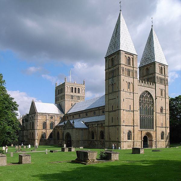 The small town of Southwell in the same county has a medieval Cathedral, which is less visited by pilgrims than the more famous great English cathedrals. However its atmosphere is one of holiness and antiquity. According to one version, Paulinus performed mass baptisms on this spot, and baptisms were continued for centuries after him. The Cathedral, known as Southwell Minster, was built over this pool which is now buried under its floor. Another tradition claims that the Cathedral was built on the site of the church built by Paulinus—this legend is depicted on the baptistery window here. The Cathedral dates back to the mid-tenth century when a college of prebends was established here. Its most celebrated artefact is the Saxon carving of Archangel Michael in the north transept; the composition is called the Tympanum. The Cathedral has the only octagonal chapter house in England, and its columns are richly adorned with carvings of foliage, flowers and human figures of perfect craftsmanship; a splendid Perpendicular west window of an angel; an elaborate carved pulpitum (or choir screen) with carvings of flora, strange faces and other peculiarities; and boasts a thirteenth-century Pilgrims’ chapel, among other things. The Cathedral was founded by an archbishop of York and one of its chapels is dedicated to St. Oswald of Worcester who was also Archbishop of York. The area around the town is rich in other holy wells, but these are not associated with Paulinus.