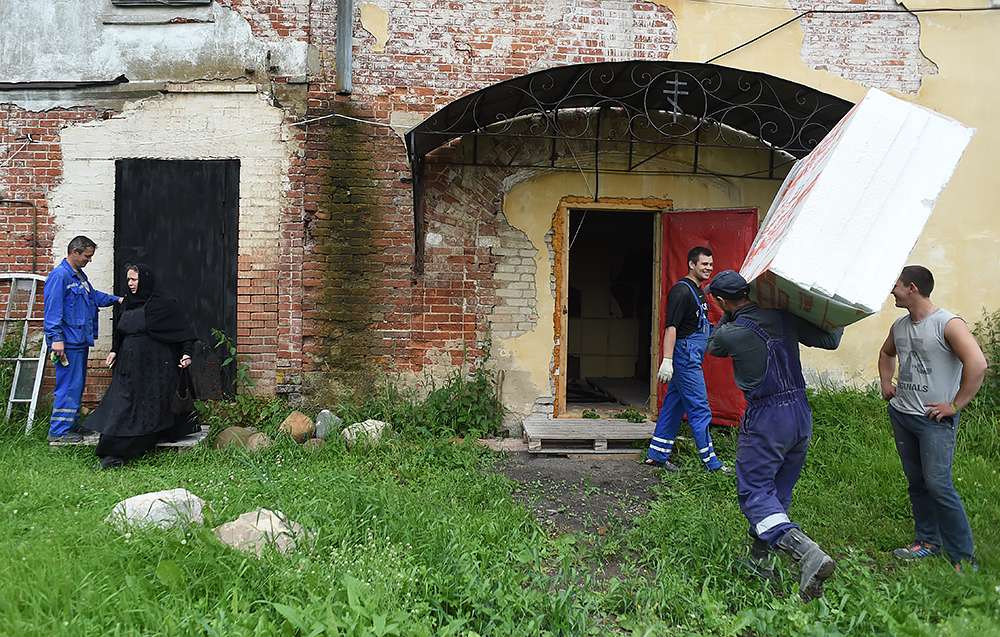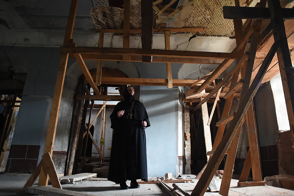 “Iron pipes with the frozen water ran around the perimeter of the ceiling. I and an assistant of ours cut through them—we tied them to a rope on hooks, while I kept an eye out and Vladimir cut off one end of the pipe, which then hung down, then he got down on the floor and we pulled the other end down together. That was a whole ‘operation’,” the abbess smiles.