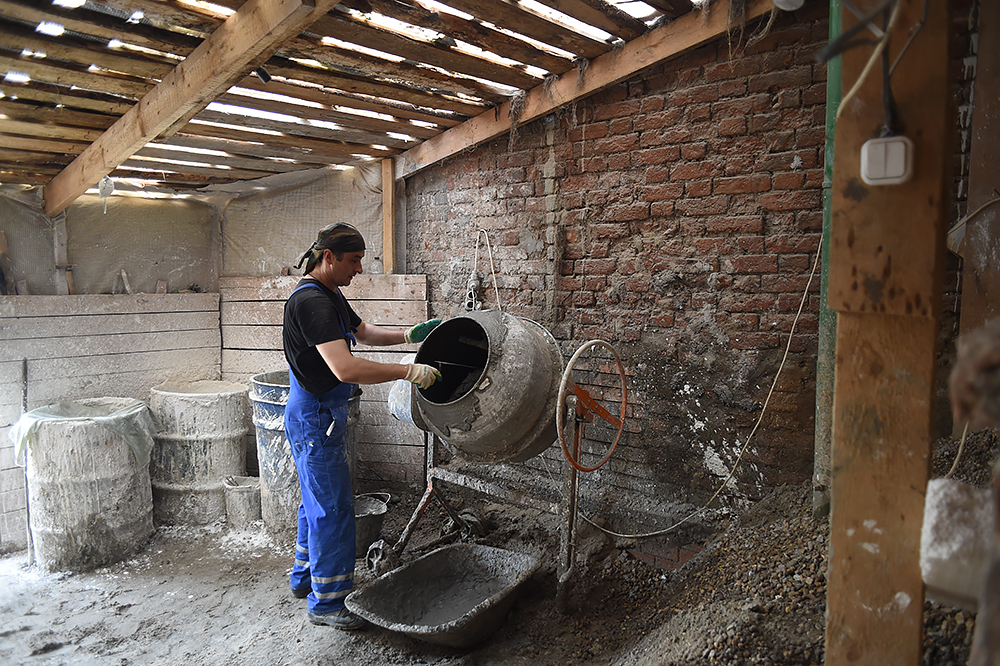 In 2015 the restoration of the convent’s north-east living quarters began. The work has been progressing slowly (due to the shortage of funds) and everything has been done manually. We observe the master builder carry a long block of metal weighing several dozen kilos on his shoulders.
